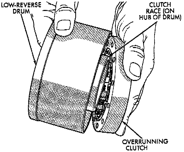 e. Check low-reverse drum rotation. Drum should rotate freely in clockwise direction and lock when turned in counterclockwise direction (as viewed from front of case).