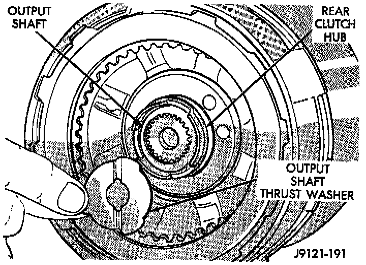 26. Check rear clutch thrust washer. Use additional petroleum jelly to hold washer in place if necessary.