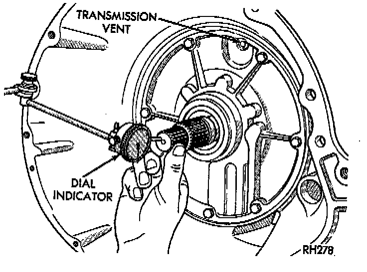 a. Attach dial indicator (C-3339) to converter housing. Position indicator plunger against input shaft and zero indicator.