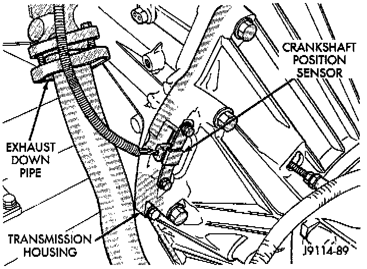CAUTION: The crankshaft position sensor can be damaged during transmission removal (or installation) if the sensor is still bolted to the engine block. To avoid damage, remove the sensor before removing the transmission.