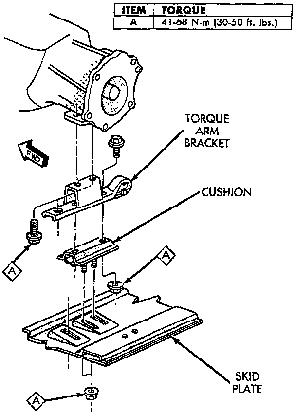 24. Remove bolts/nuts attaching cushion and torque arm bracket to skid plate.
