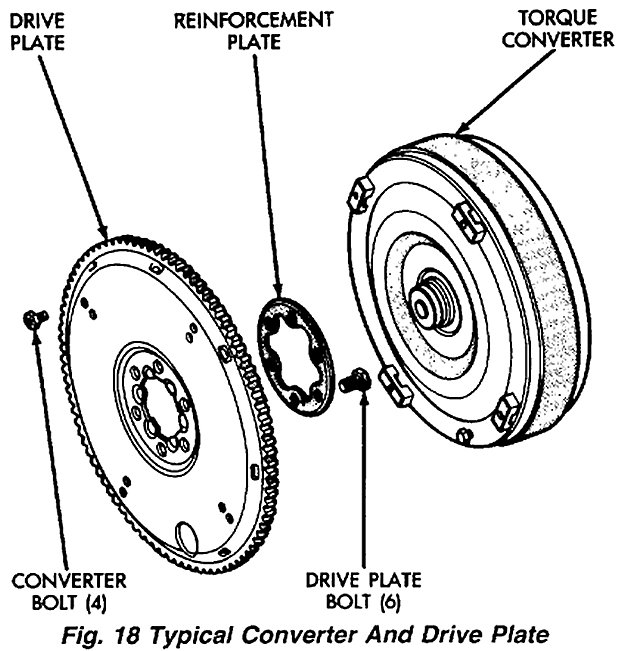 The drive plate and torque converter can be replaced or removed for service access after the transmission has been removed (Fig. 18).