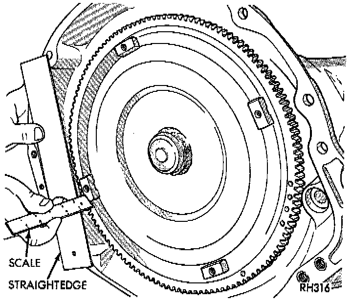 20. Remove converter housing access cover and mark drive plate and converter for alignment reference.