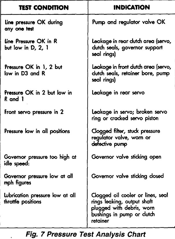 (7) Rear servo pressure should be same as line pressure within 3 psi.