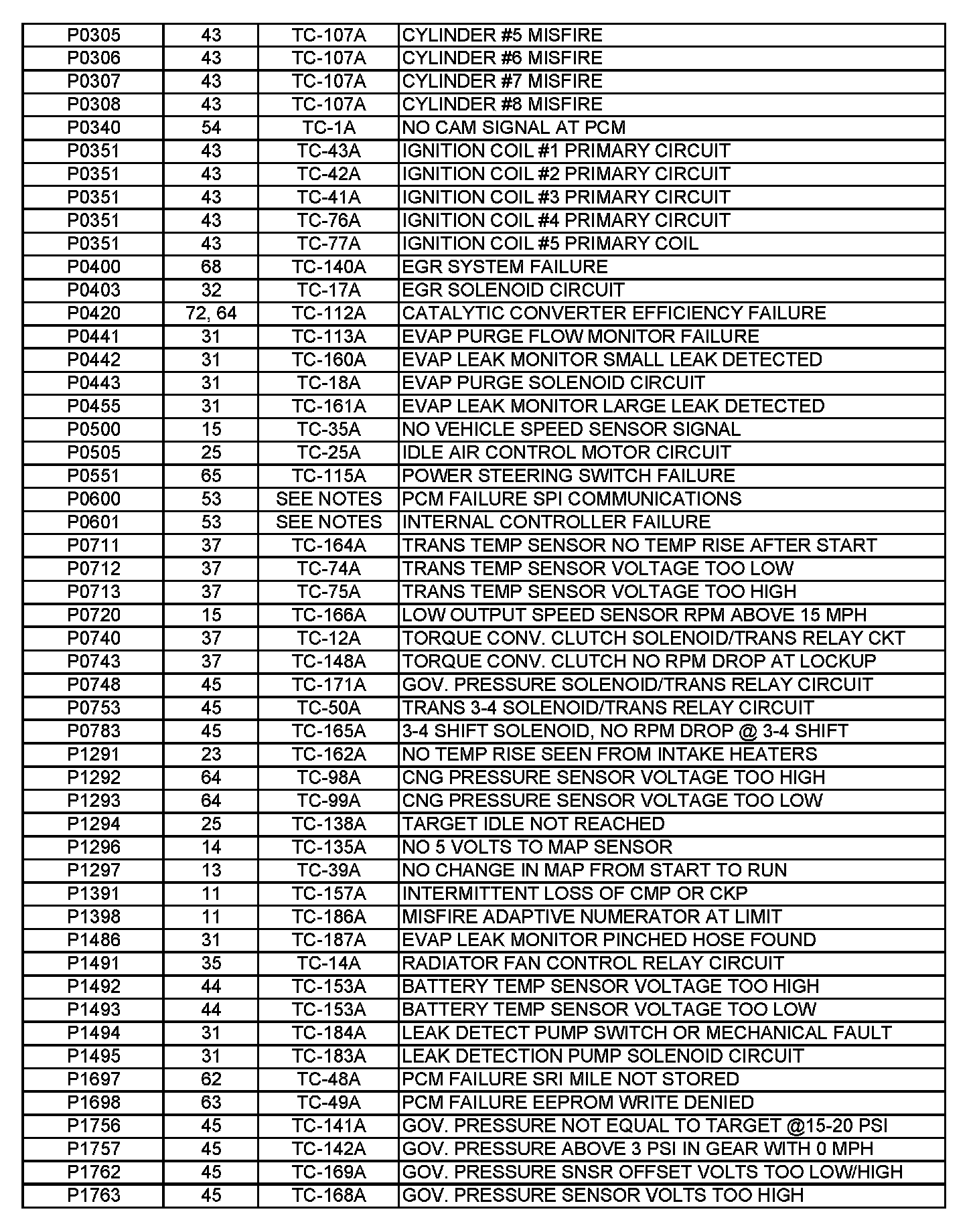 P1764 - P1899 And 2 Digit Codes With No Corresponding P Code-Match Code Description For Proper Chart (Includes Notes):