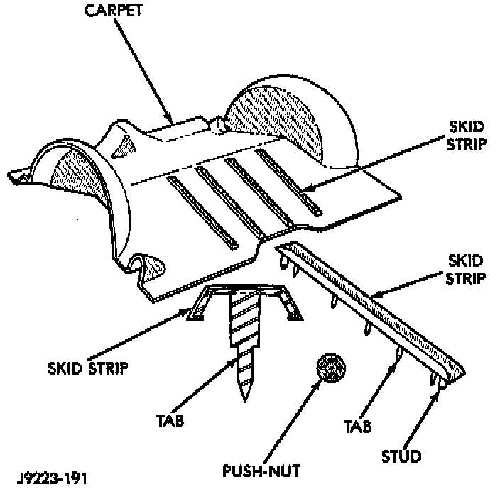 1. If removed, install the skid strips on the carpet.