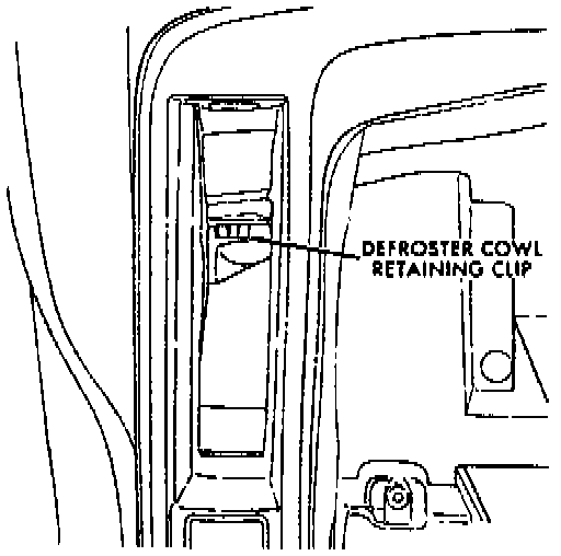 12. Remove defroster cowl panel. It may be necessary to remove driver's side heat-A/C outlet to gain access to lefthand defroster cowl panel retaining clip.