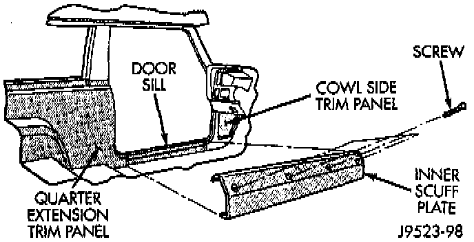 1. Remove the retaining screws and the inner scuff plate from the door sill.