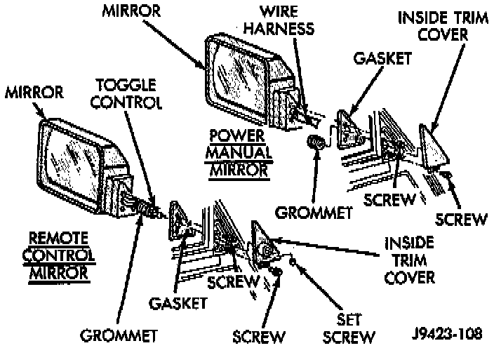 3. For remote mirrors, position the inside trim cover over the toggle control and tighten the setscrew.