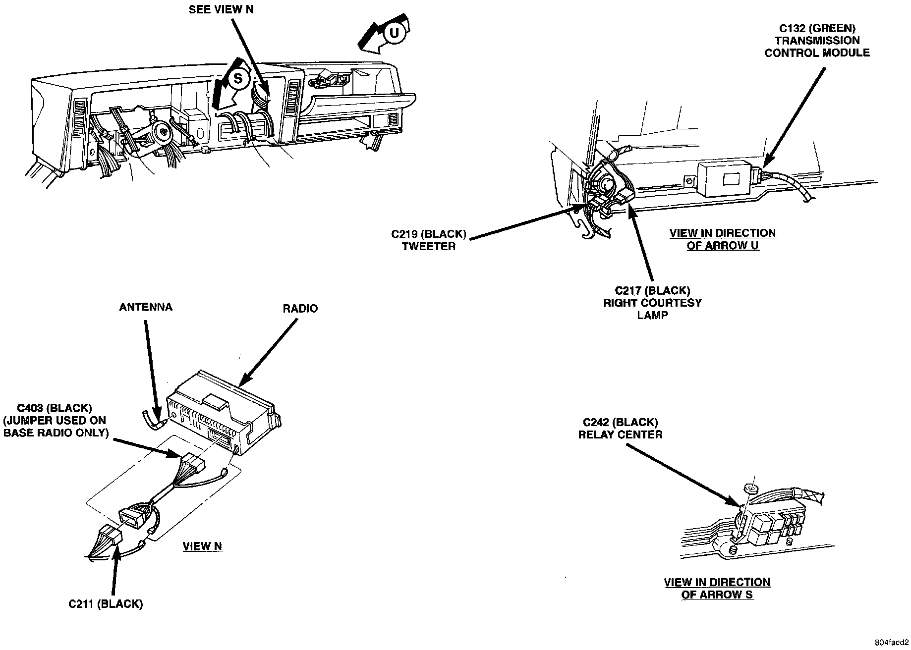 Instrument Panel Wiring Connectors - Center: