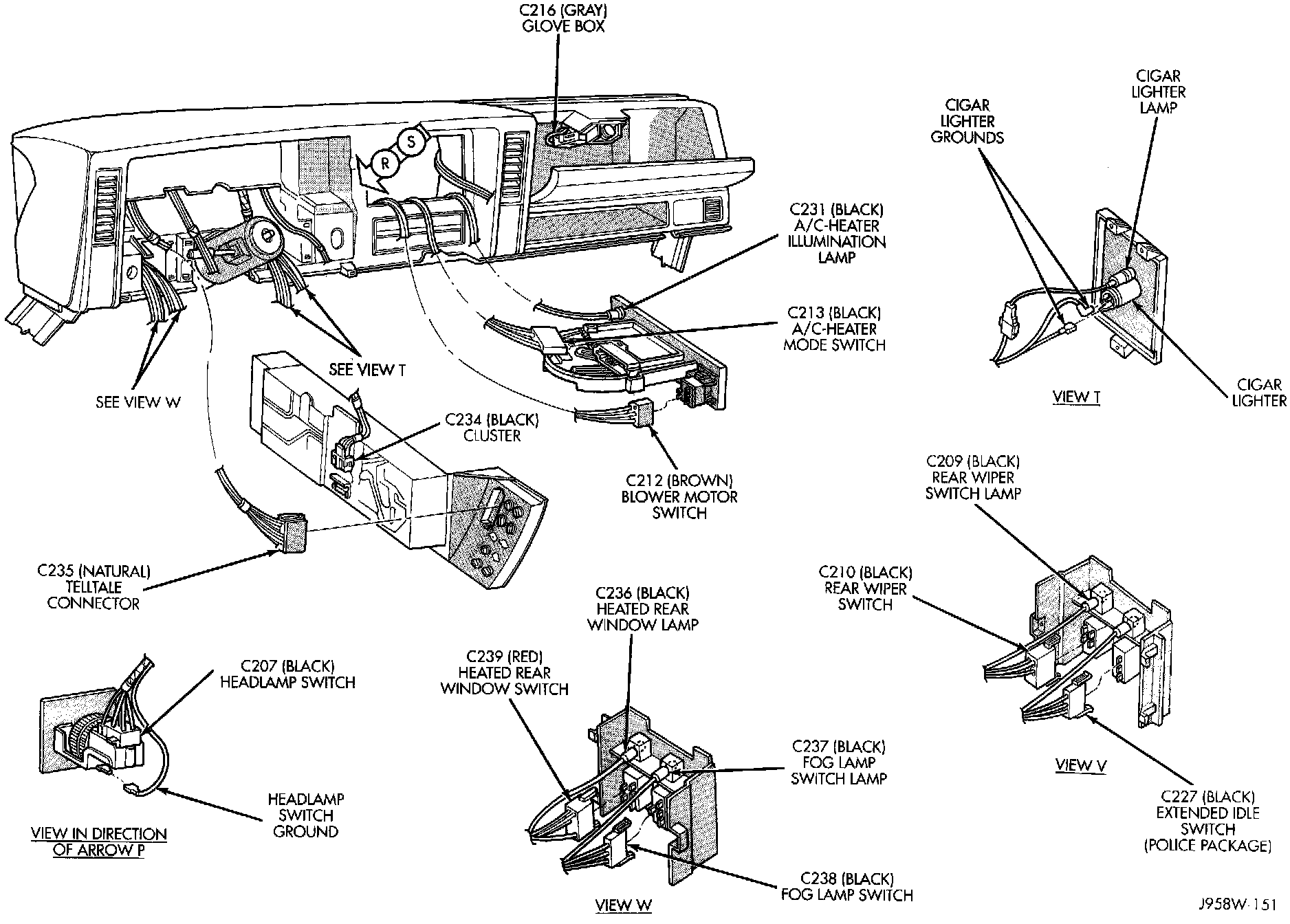 Instrument Panel Wiring Connectors - Left Side: