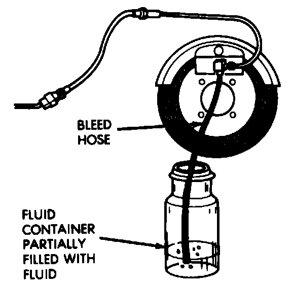 (d) Repeat bleeding operation at each wheel brake unit fluid entering glass container is free of air bubbles. Check reservoir fluid level frequently and add fluid if necessary.