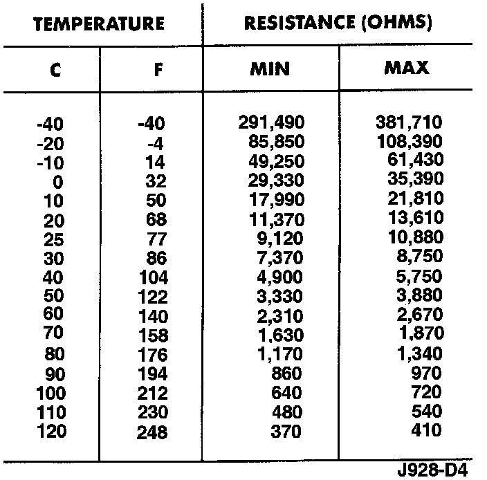 Sensor Resistance (Ohms)-Coolant Temperature Sensor/Intake Air Temperature Sensor: