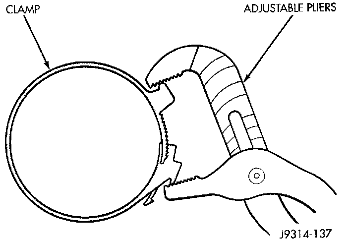 5. Install clean air hose and clamp to cover. Compress the clamp snugly with adjustable pliers as shown in (Fig. 45).