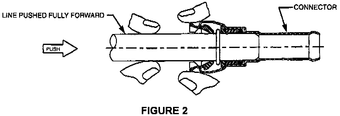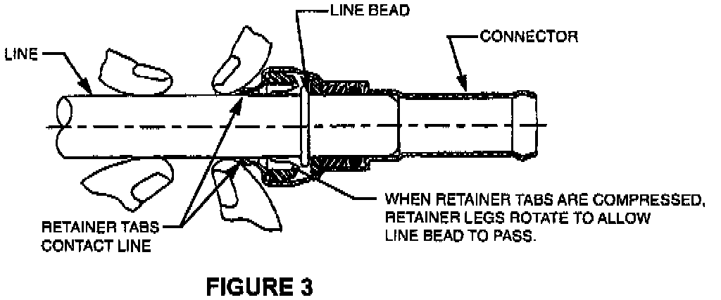 1. Holding the line as shown, grasp connector body with fingers touching the retainer tabs (Figure 1).