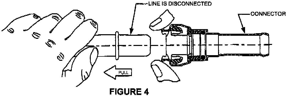 4. Pull line out of the connector with other hand while retainer tabs are squeezed together (Figure 4).