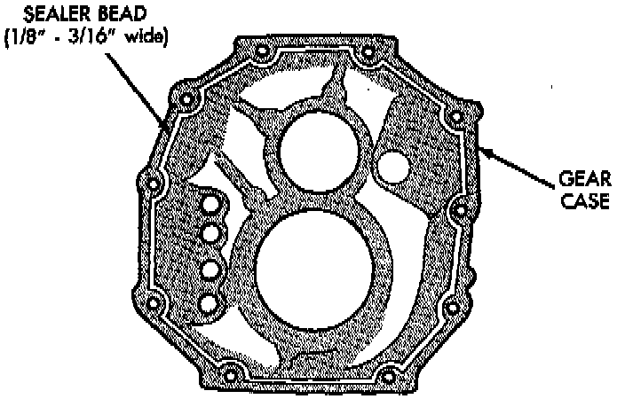 10. Apply a 1/8 to 3/16 inch wide bead of Threebond Liquid Gasket TB1281, to sealing surface of adapter/extension housing, making sure to keep sealer bead to inside of bolt holes.