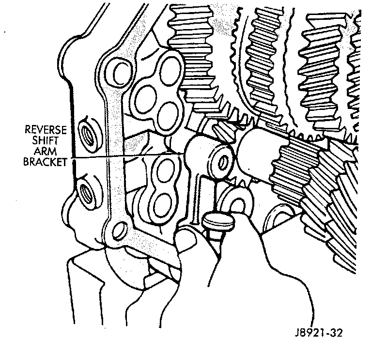 6. Remove reverse shift arm bracket.