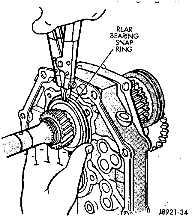 8. Remove rear bearing snap ring.