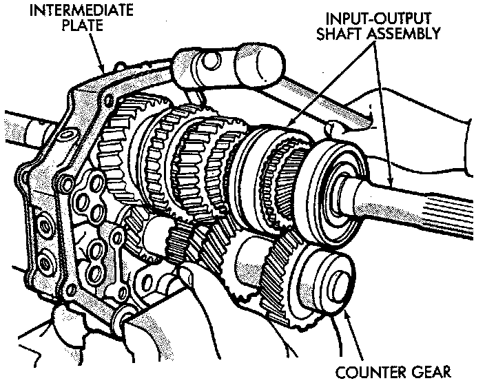 9. Tap intermediate plate with plastic mallet and pull output shaft-counter gear assemblies out of plate.