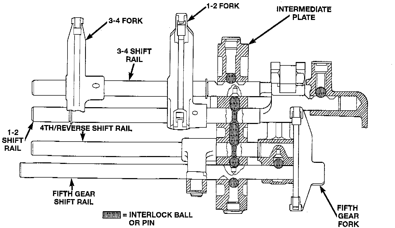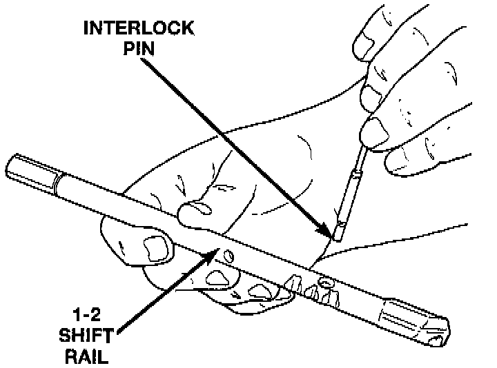 3. Install the interlock pin into the 1-2 shift rail.