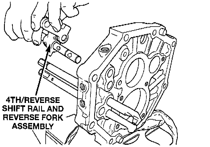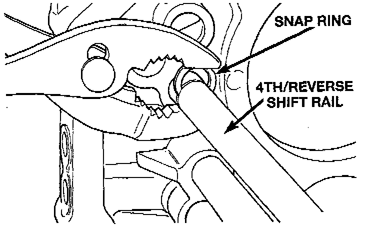 10. Install snap-ring onto 4th/reverse shift rail.