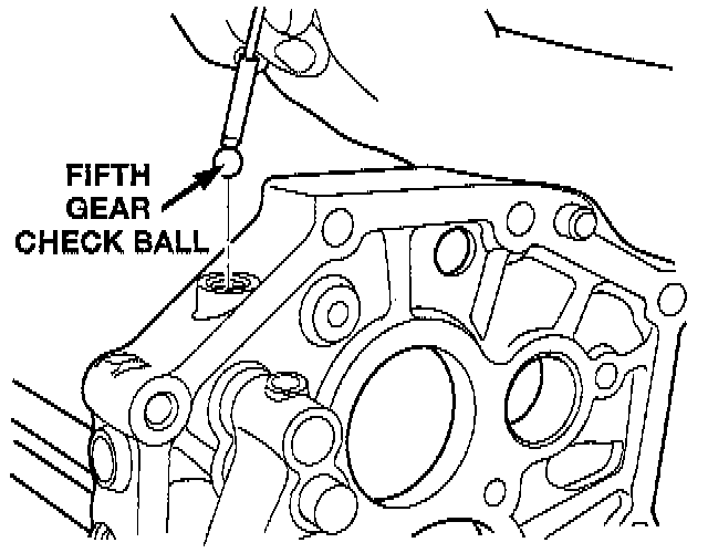 12. Install the fifth gear interlock ball and check ball.