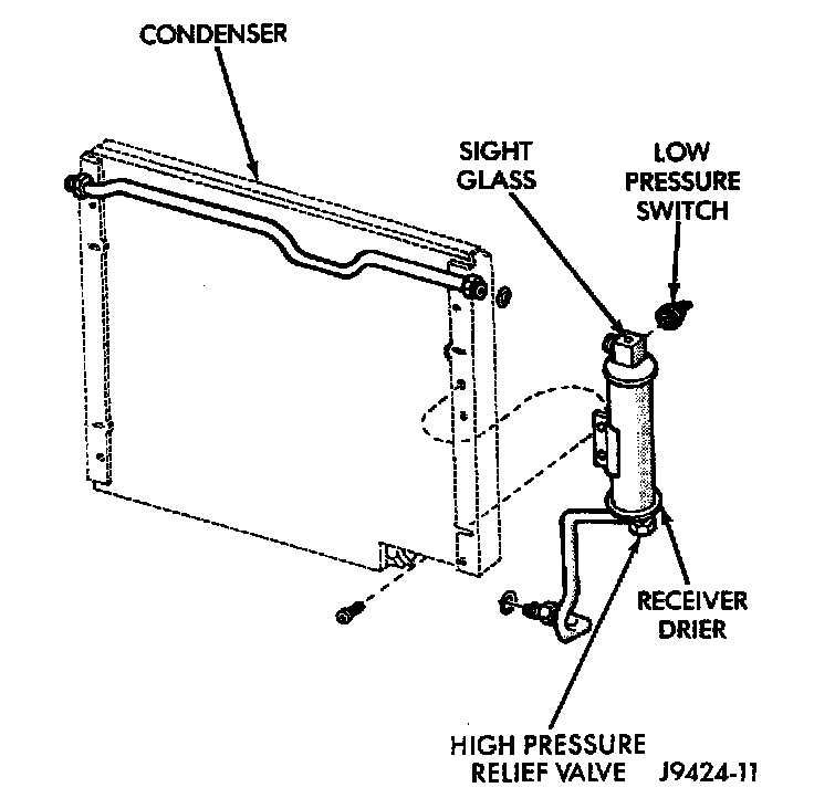 10. Remove the filter-drier from the condenser. Install plugs in, or tape over, all open refrigerant fittings.