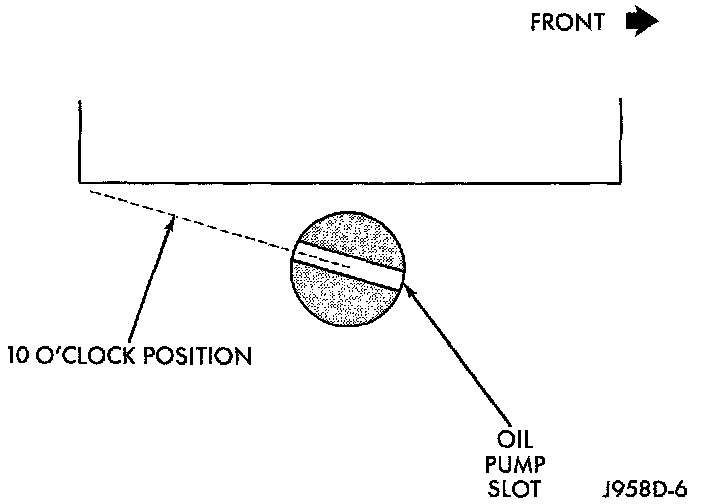 14. Observe the slot in the oil pump gear through the hole on the side of the engine. It should be slightly before (counterclockwise of) the 10 o'clock position (Fig. 38).