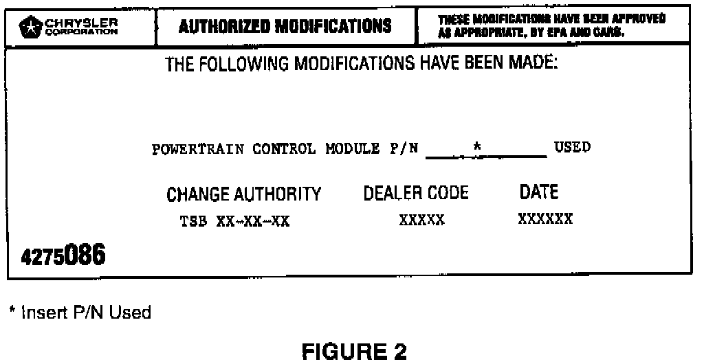 10. Type the necessary information on the "Authorized Software Update Label" p/n 04669020 (Figure 1). Attach the label to the PCM and cover the label with the clear plastic overlay.