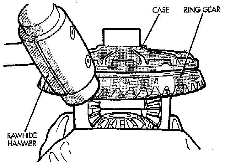 4. Using a soft hammer, drive ring gear from differential case.
