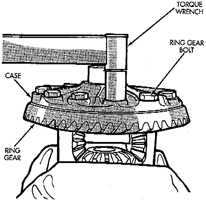 1. Invert the differential case and start two ring gear bolts. This will provide case-to-ring gear bolt hole alignment.