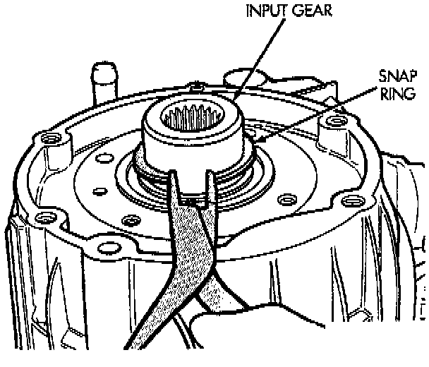 2. Install snap-ring to hold input/low range gear into front bearing.