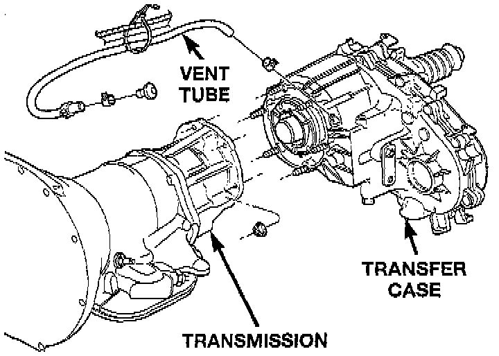 14. Pull transfer case and jack rearward to disengage transfer case.