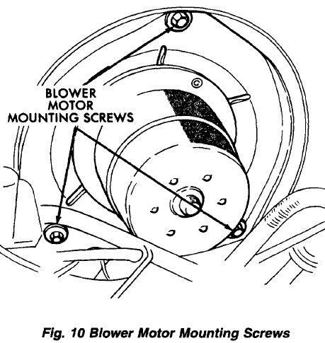 (3) Remove the blower motor mounting bolts (Fig. 10).
