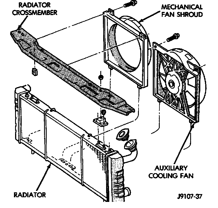 4. Remove the fan shroud and remove the electric fan from the radiator.