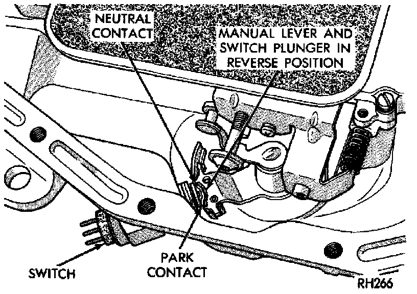4. Move shift lever to Park and Neutral positions. Verify that switch operating lever fingers are centered in switch opening in case.