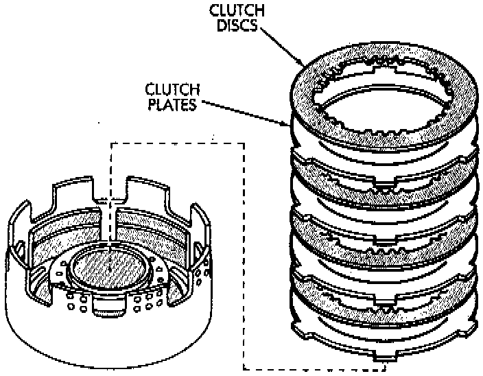 4. Install clutch discs and plates. Install plate then disc until all plates and discs are installed. Four plates and discs are required.