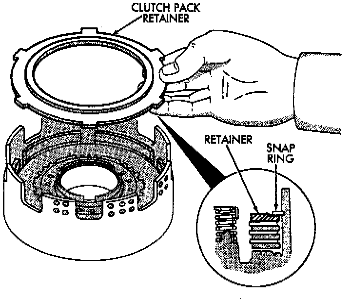 3. Compress piston return springs with Tool 7538, or equivalent and install snap ring. Be sure snap ring end gap is not aligned with spring retainer tab.