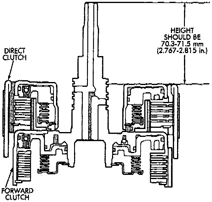 9. Mount direct clutch assembly on forward clutch assembly and check assembled height. Height should be 70.3 to 71.5 mm (2.767 to 2.815 inch).