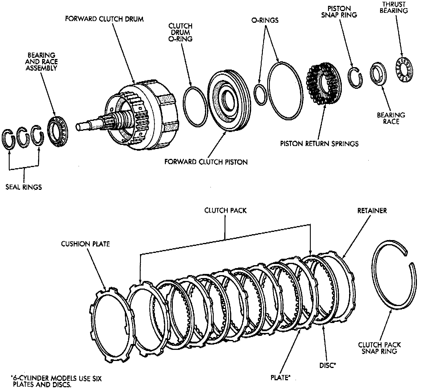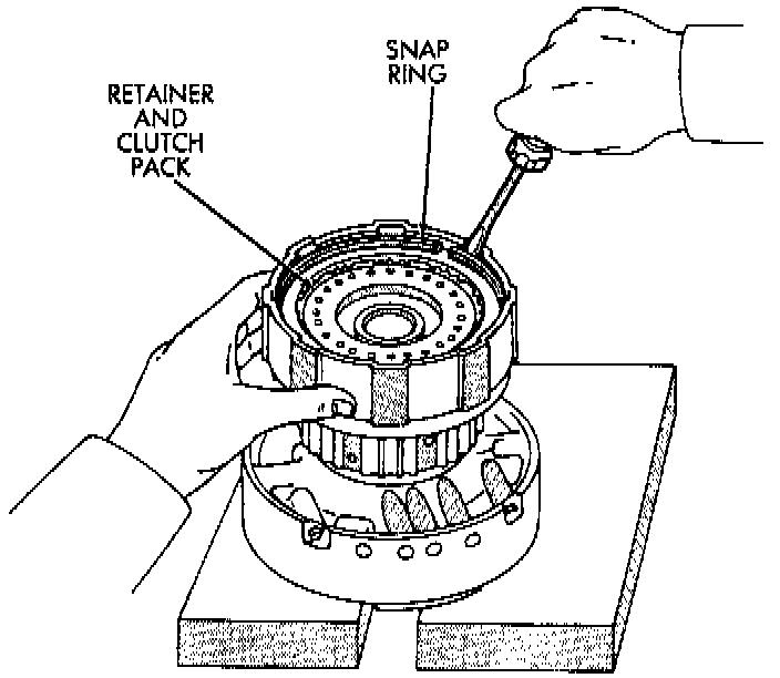 8. Remove clutch pack snap ring and remove retainer and clutch pack.