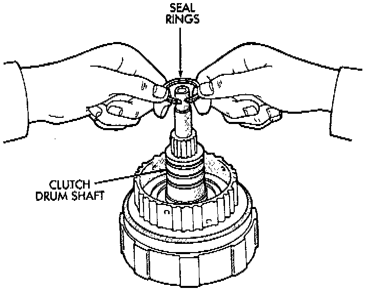 2. Position overdrive support on wood blocks and mount forward clutch drum on support.
