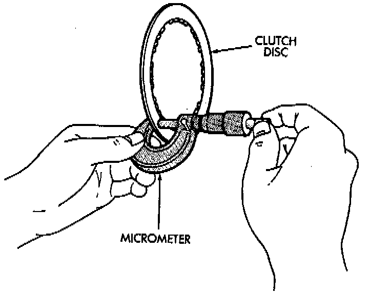 18. Measure clutch disc thickness. Minimum allowable thickness is 1.51 mm (0.0595 inch). Replace clutch pack if any disc falls below specified minimum thickness.