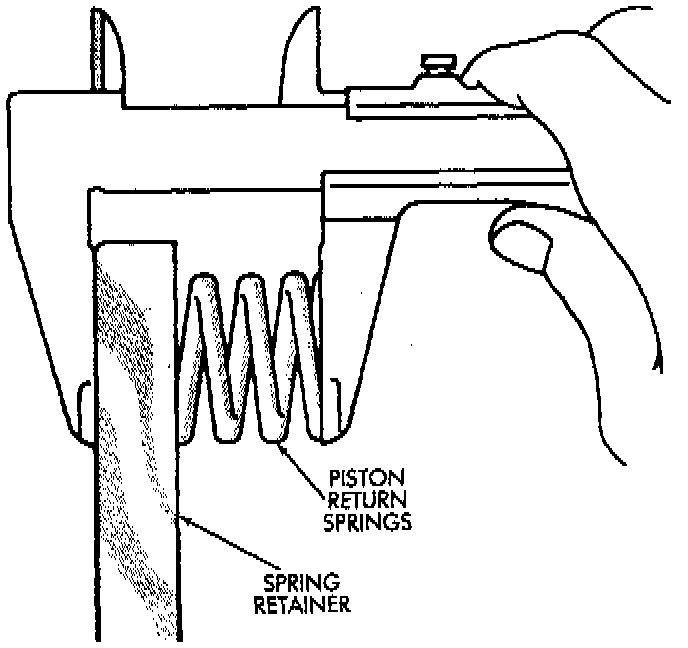 19. Measure free length of piston return springs with springs mounted in retainer. Length should be 19.47 mm (0.767 inch). Replace springs and retainer if length is incorrect.