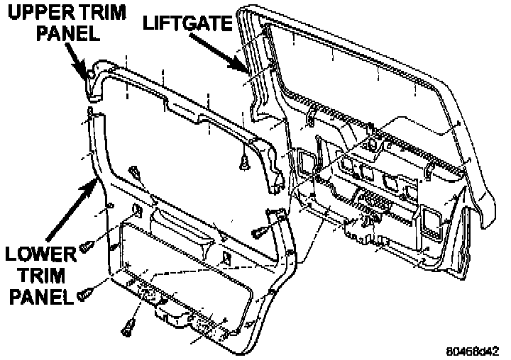 1. Disconnect and isolate the battery negative cable.2. Remove the screws securing the liftgate lower trim panel to the liftgate.
