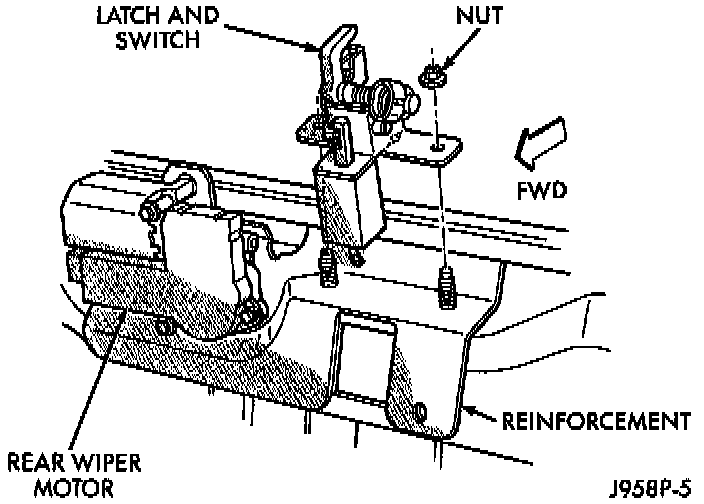 5. Unplug the wiring connectors for the liftglass latch solenoid and the liftglass ajar switch.
