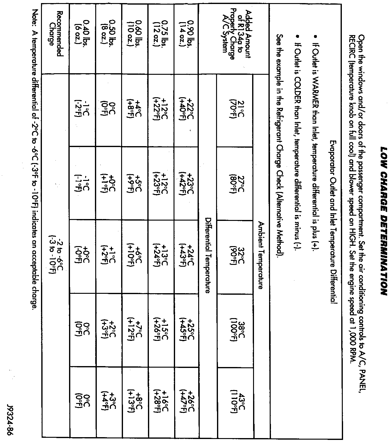 ALTERNATIVE METHOD:This method of adding partial charge requires the measuring of the temperature difference between the evaporator inlet and outlet tubes. If it was not necessary to discharge the refrigerant system, a partial refrigerant charge can be added.