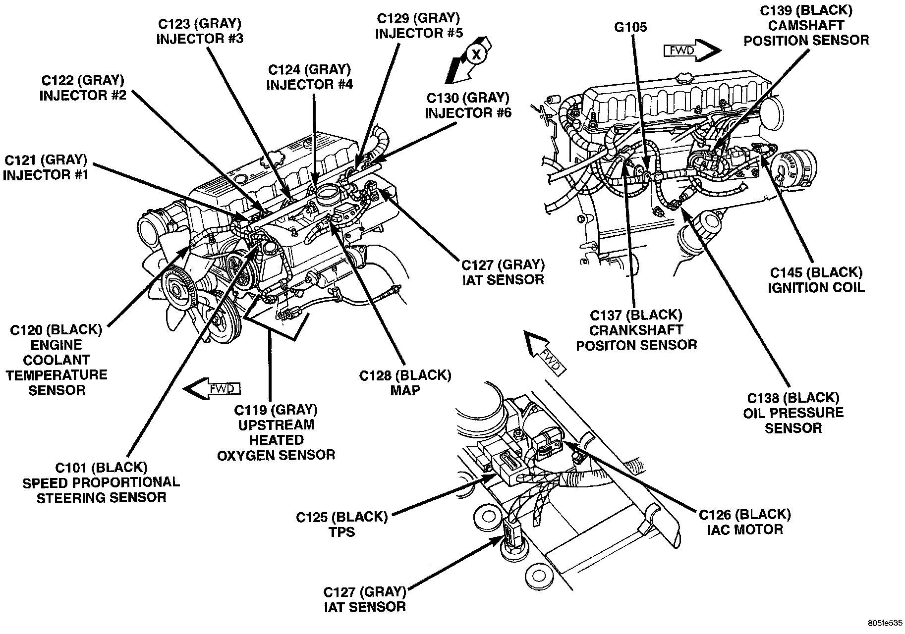 Coolant Temperature Sensor/Switch (For Computer): Locations
