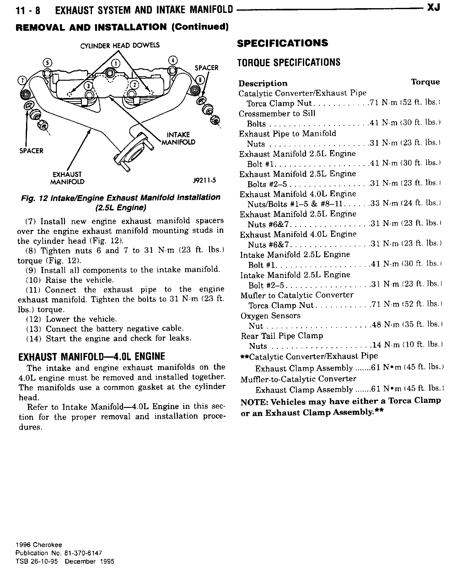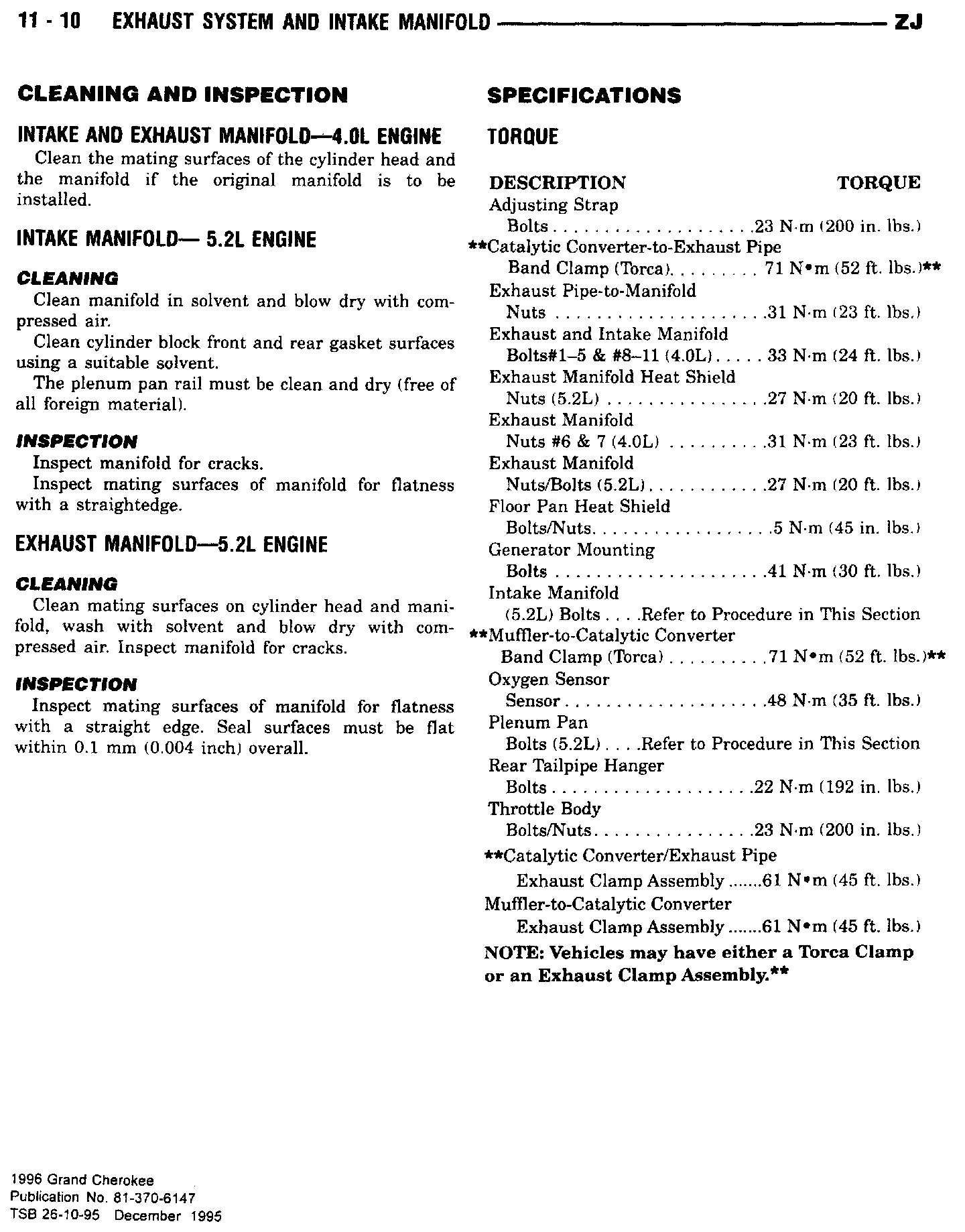 Revision to the exhaust clamp torque specification.