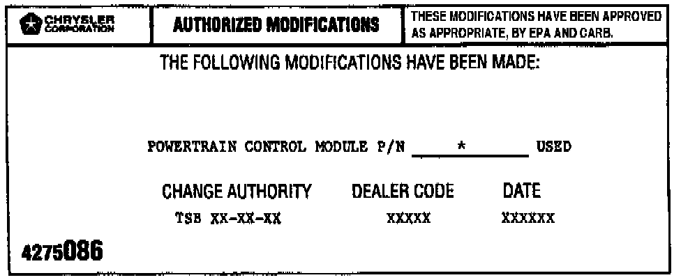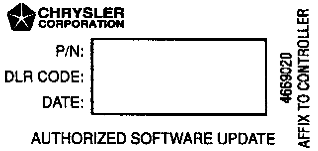 9. Type the necessary information on the "Authorized Software Update Label" P/N 4669020. Attach the label to the PCM and cover the label with a clear plastic overlay.